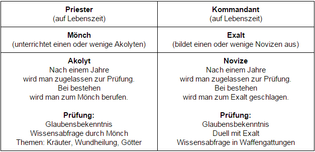 Gesetze, Entscheidungen und Aufträge werden von Priestern und Kommandanten ausgearbeitet und geplant.