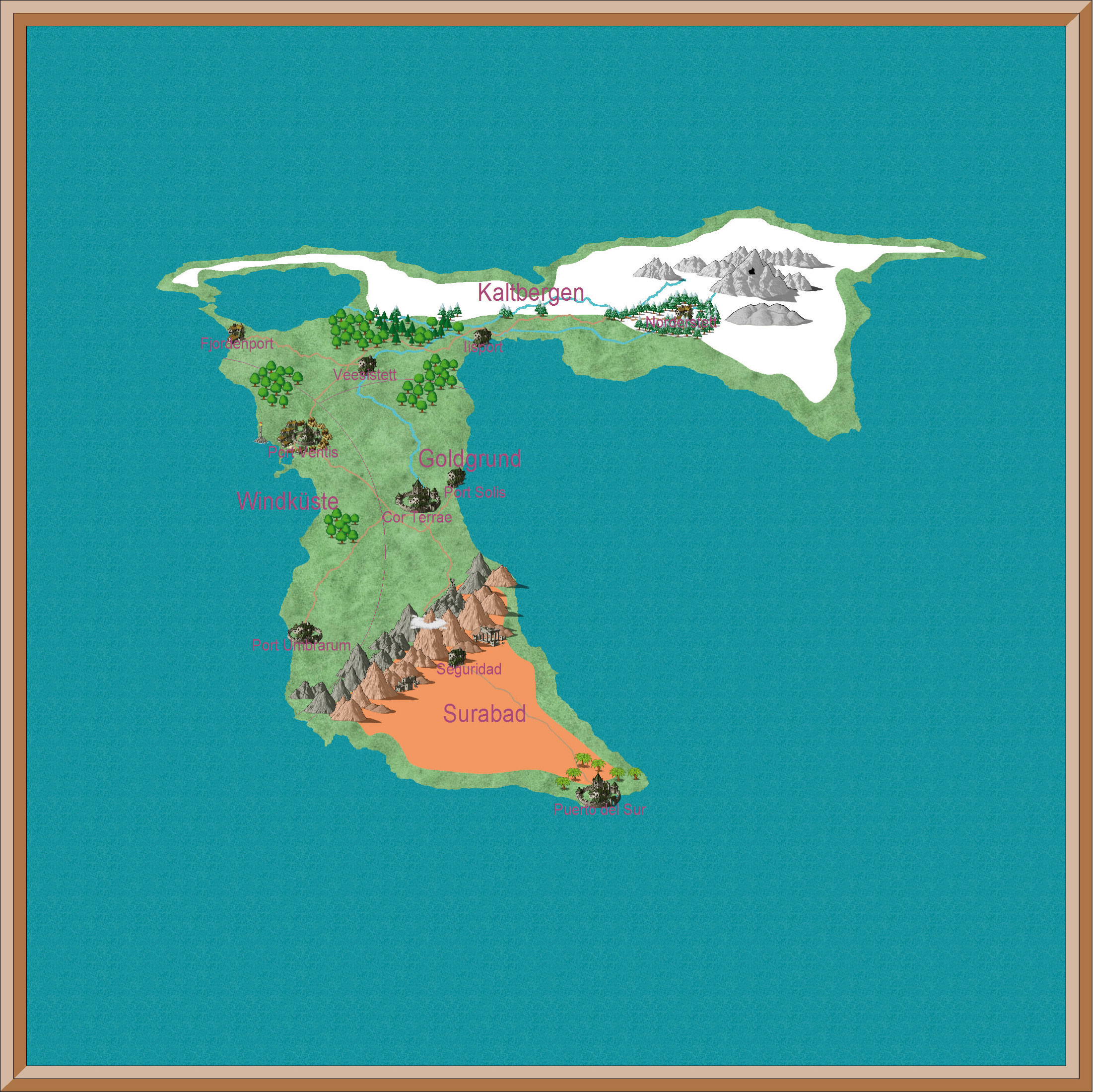 Im südlichen Goldgrund, nördlich der Sandberge, haben etwa 50 Zwerge eine kleine Stadt in einem besonders rohstoffreichen Berg errichtet. Sie nennen die Stadt Werdgaard und fordern für sie das Recht eines eigenständigen Königreiches ein. Das Privileg wird der Miniaturstadt eher stillschweigend gebilligt, weil man auf die Ressourcen der Zwerge angewiesen ist. De facto haben sie aber nicht das Recht eines Königreiches. Der amtierende Gaardenfjarn (zwerg. etwa: Oberster Wächter) und König der Stadt ist Obult Kupferbart II. Die Zwerge sind stolz und reich; sie versorgen die Adeligen mit Schmuck und die Könige mit Waffen und Rüstungen für ihre Armeen.